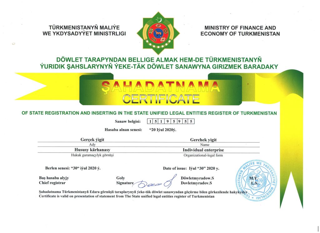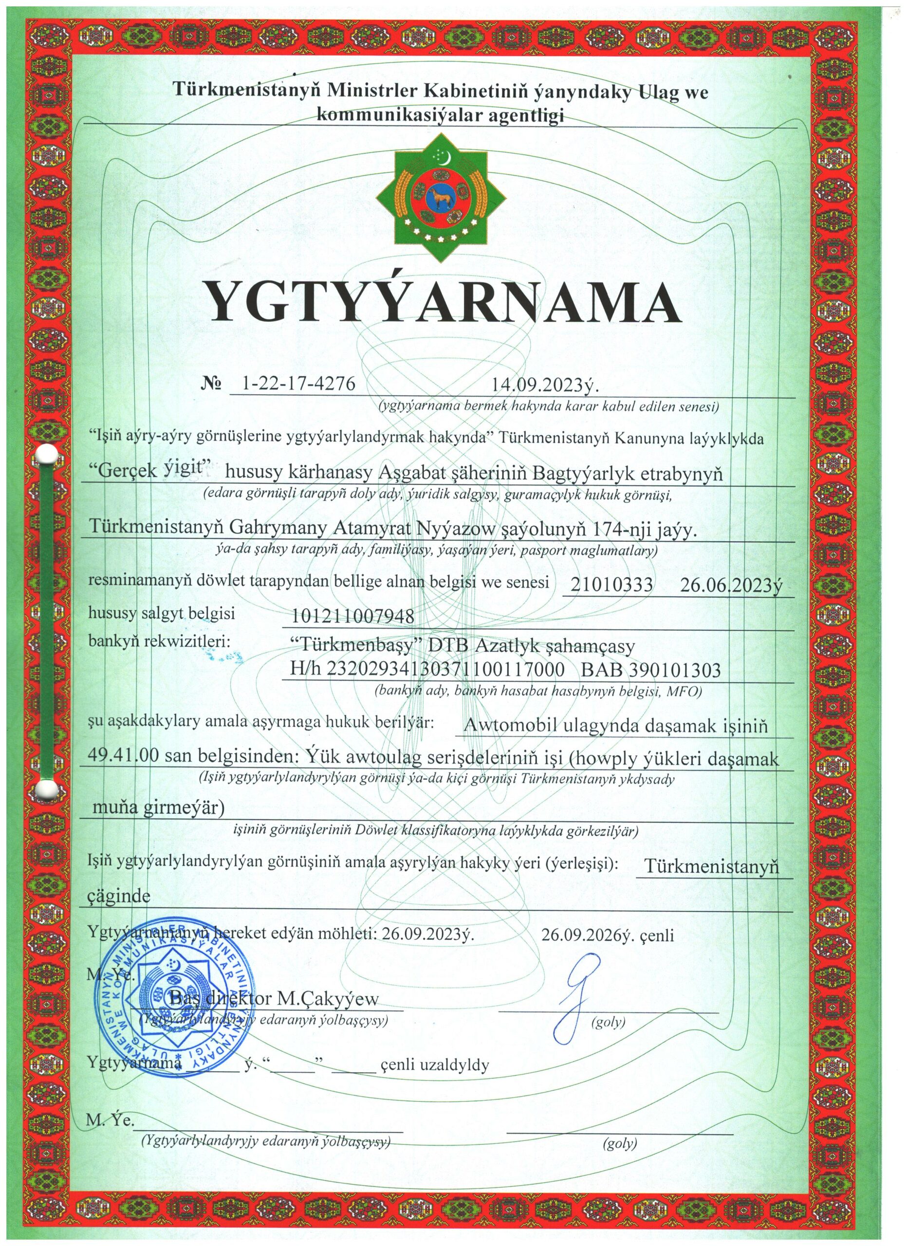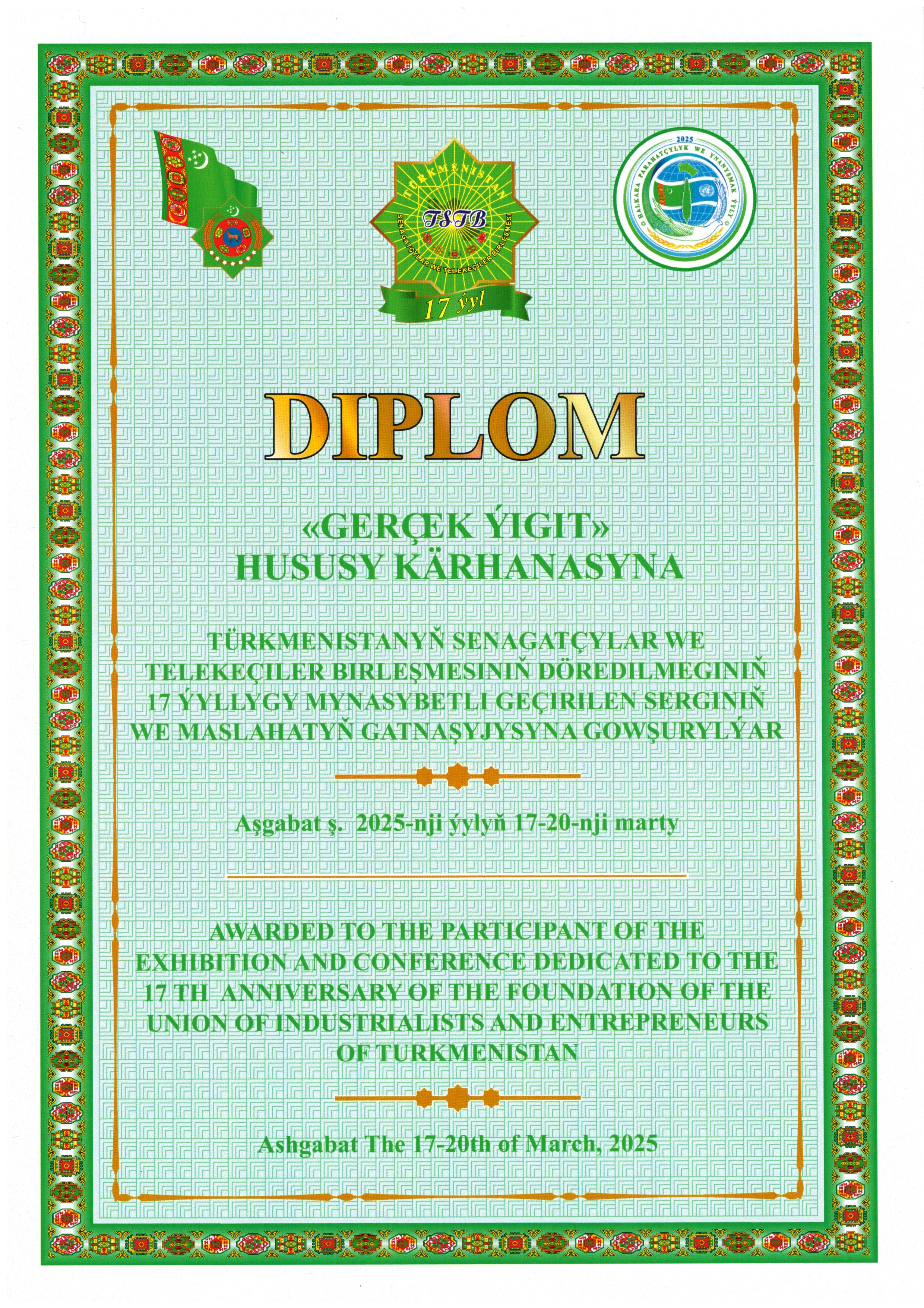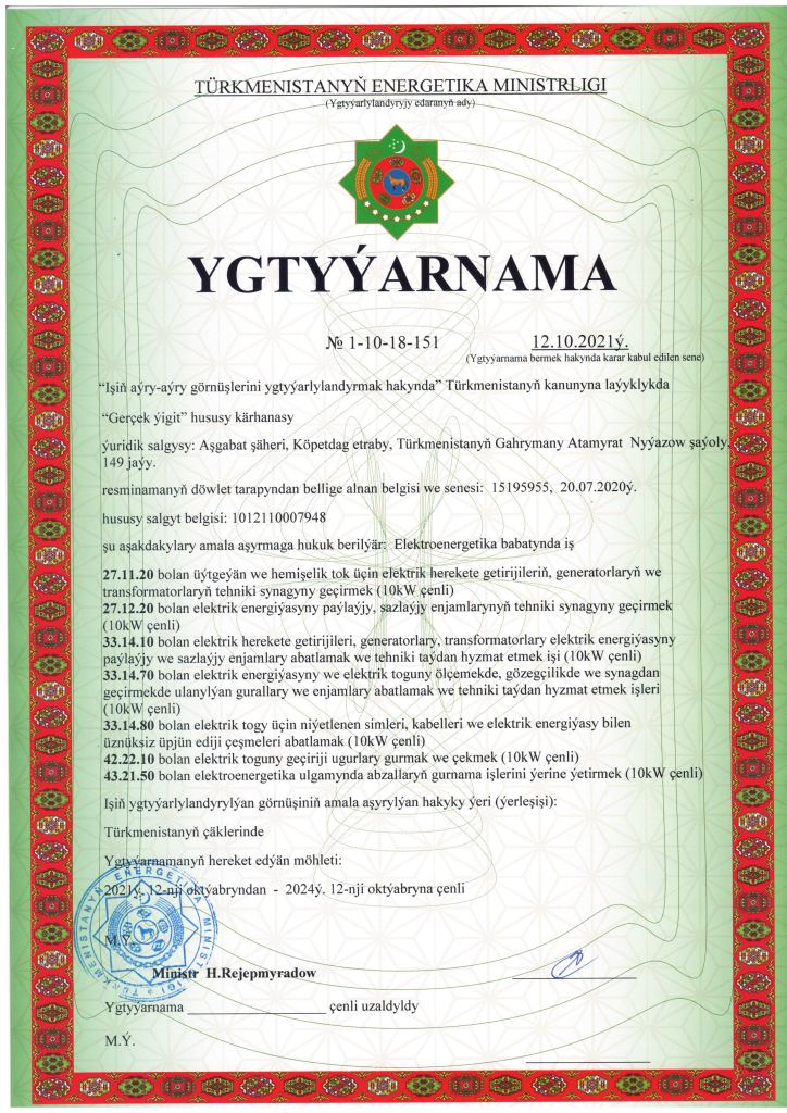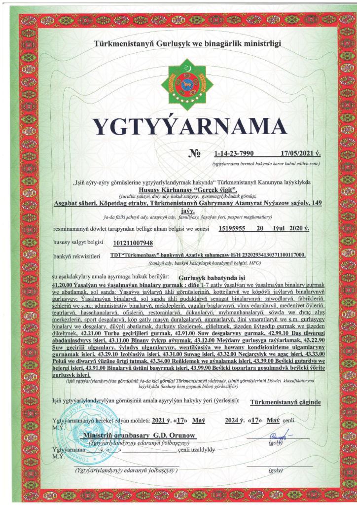 The individual enterprise “Gerchek Yigit” (Turkmenistan, Ashgabat) was founded in 2020, however, in a short period of time, we entered the economic component of our country by completing several projects.