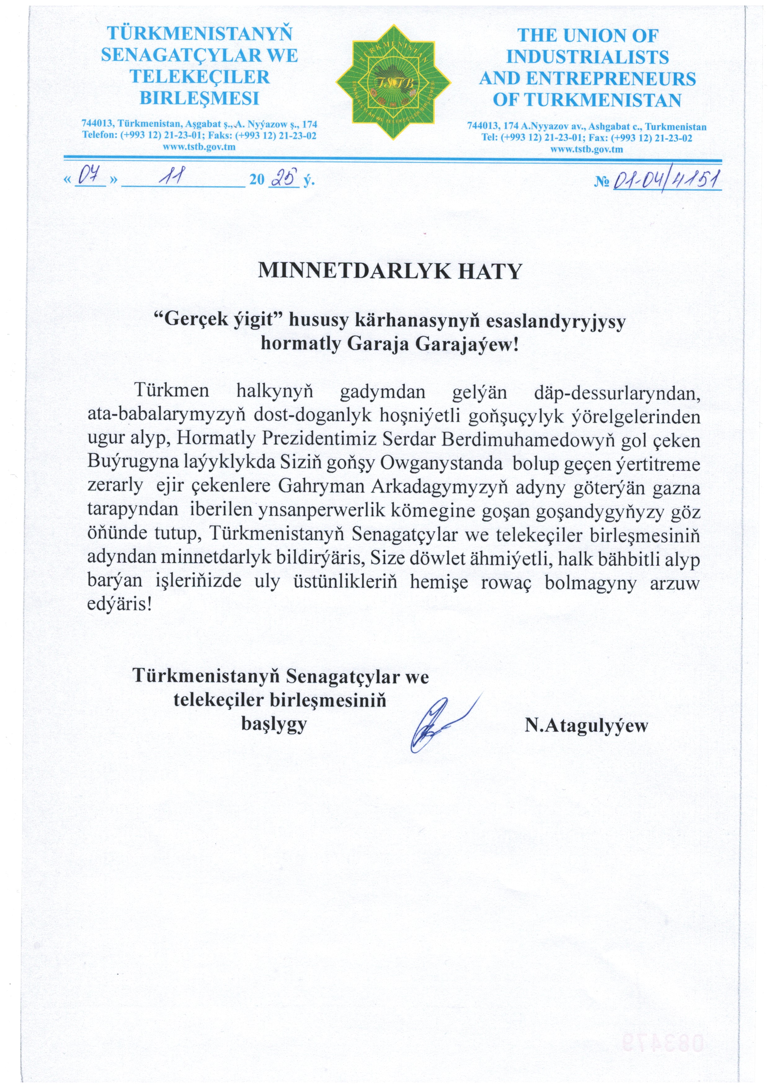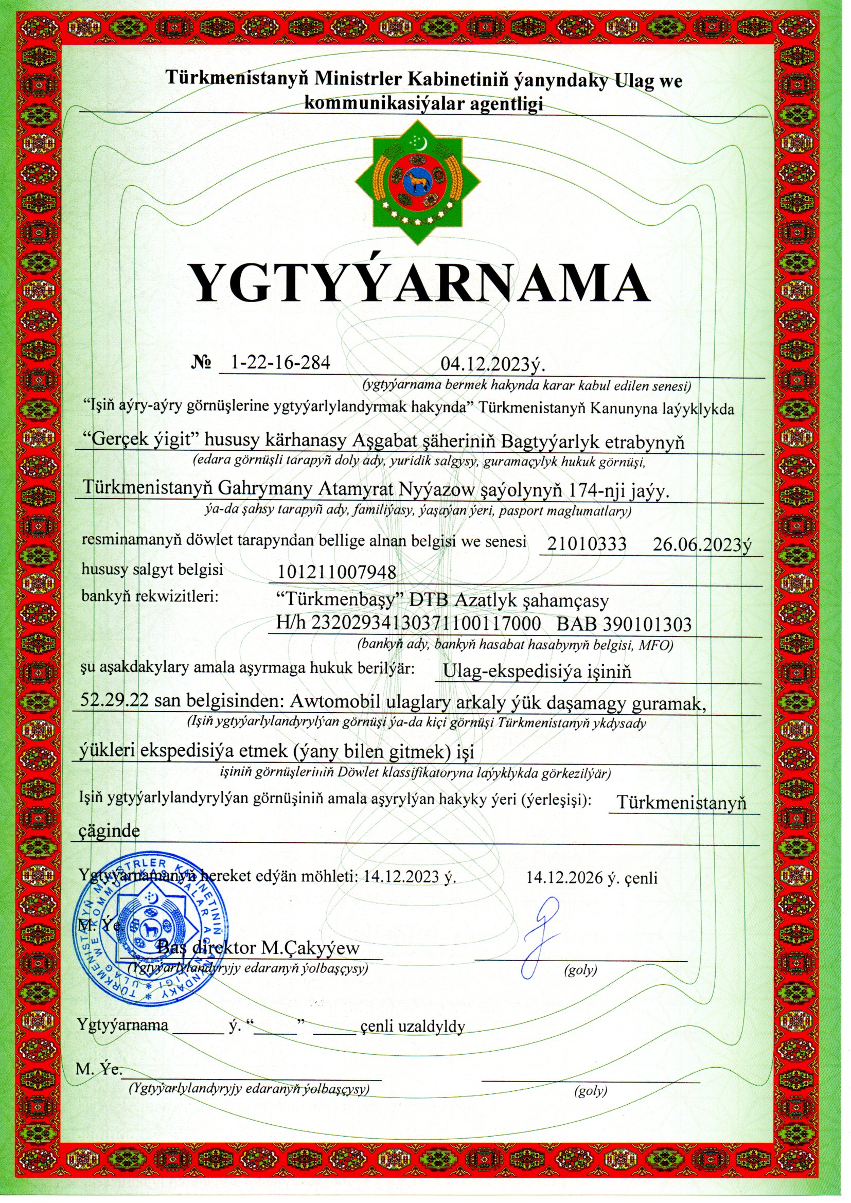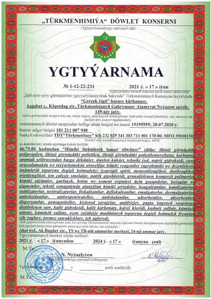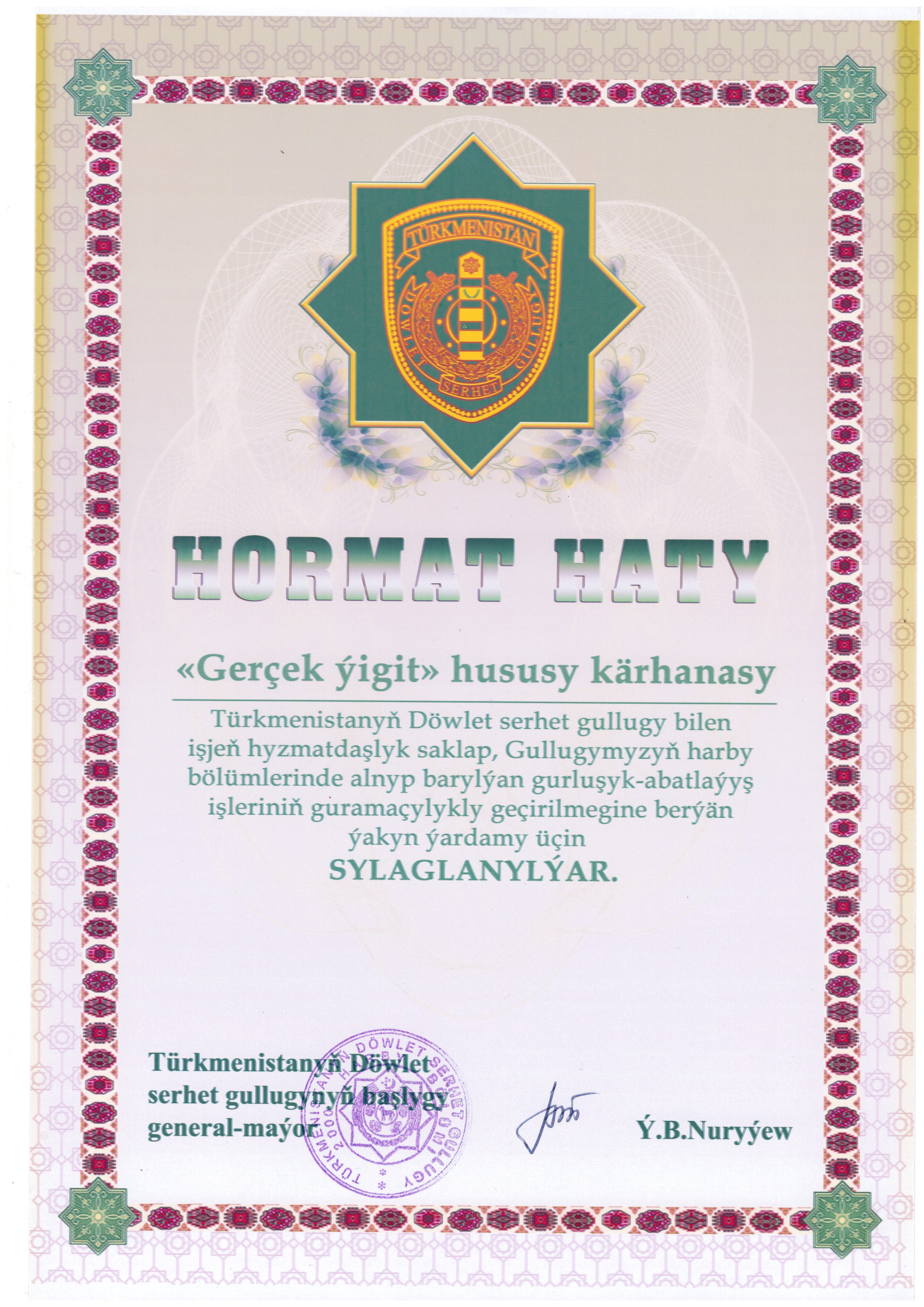 The individual enterprise “Gerchek Yigit” (Turkmenistan, Ashgabat) was founded in 2020, however, in a short period of time, we entered the economic component of our country by completing several projects.